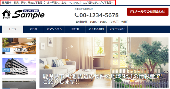 ホームぺージ最上部に設定したサイトタイトルが表示されます。