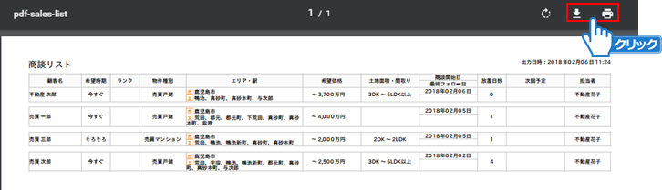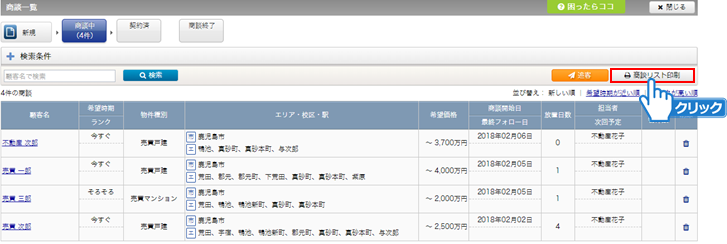 ①商談一覧の「商談リスト印刷」ボタンをクリックしてください。