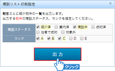 ②条件を設定し、「出力」ボタンをクリックしてください。