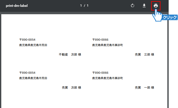 ③ダウンロードされたデータを開き、宛名ソフトで印刷を行ってください。