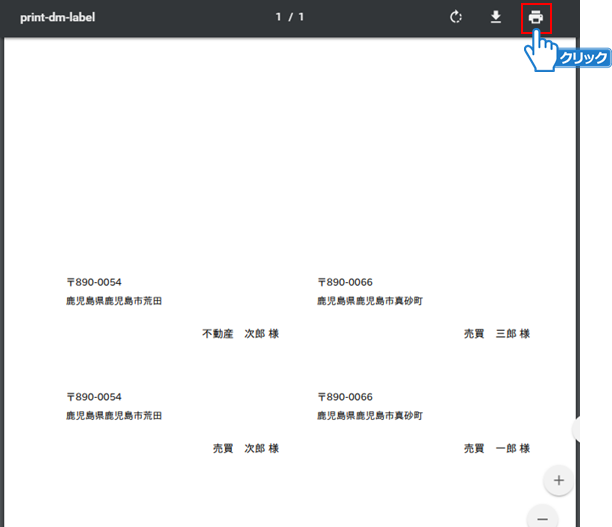 ②「印刷」ボタンをクリックし、印刷を行ってください。
