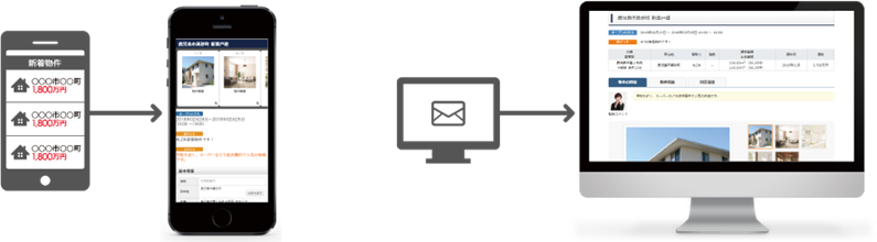 メールには、物件詳細のURLが自動的に差し込まれ、物件の詳細は、インターネットで簡単に確認できます。