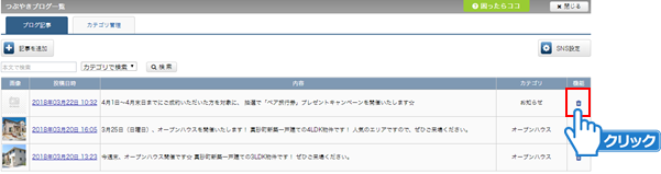 つぶやきブログの記事を削除する