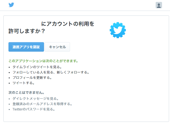 「連携アプリを認証」ボタンをクリック