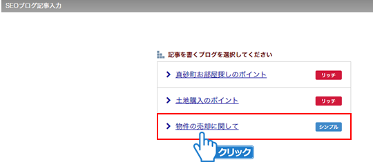 シンプルブログタイプのSEOブログ記事登録を行う方法です。