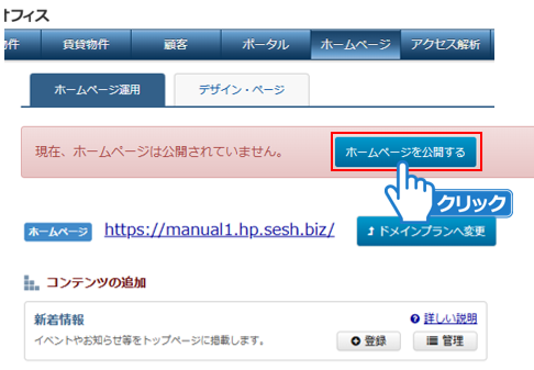 ホームページを編集中などで、一時的に非公開の状態にしたい場合は、