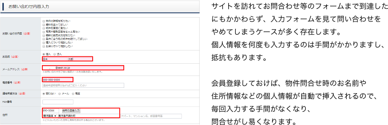 バナー、会員限定物件から会員登録フォームへ誘導します。
