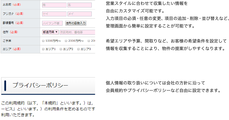 カスタマイズ可能なフォームで見込客情報を獲得し、営業活動にご活用いただけます。