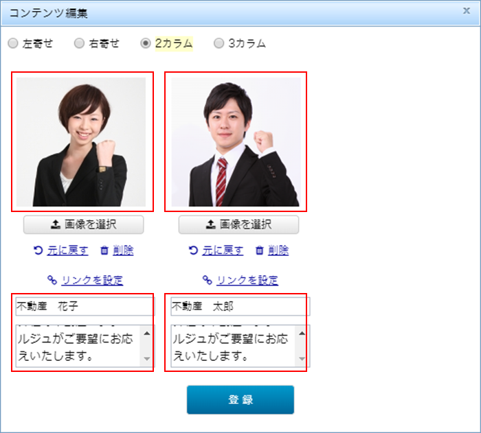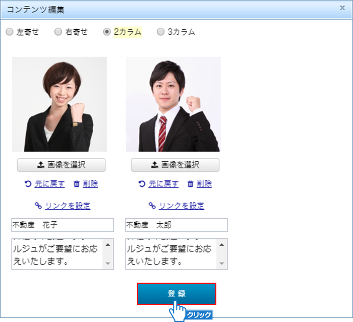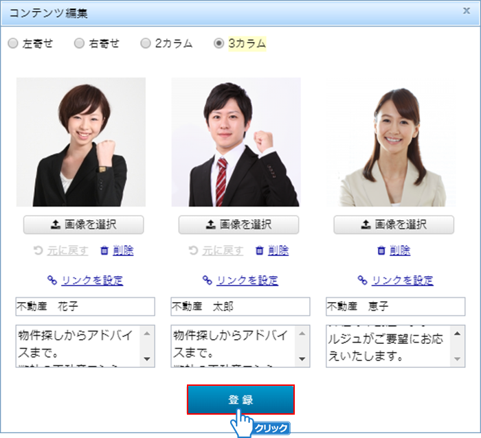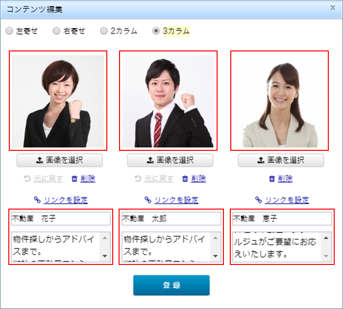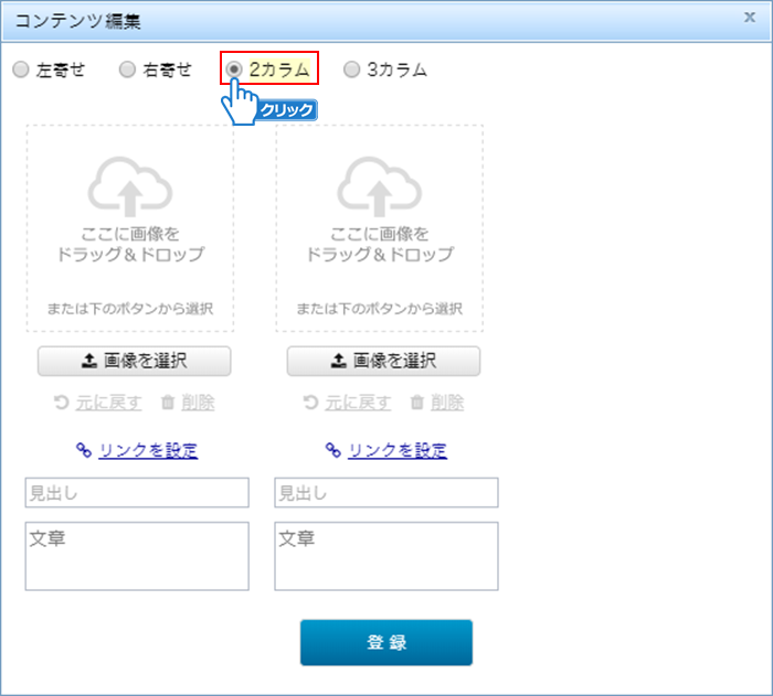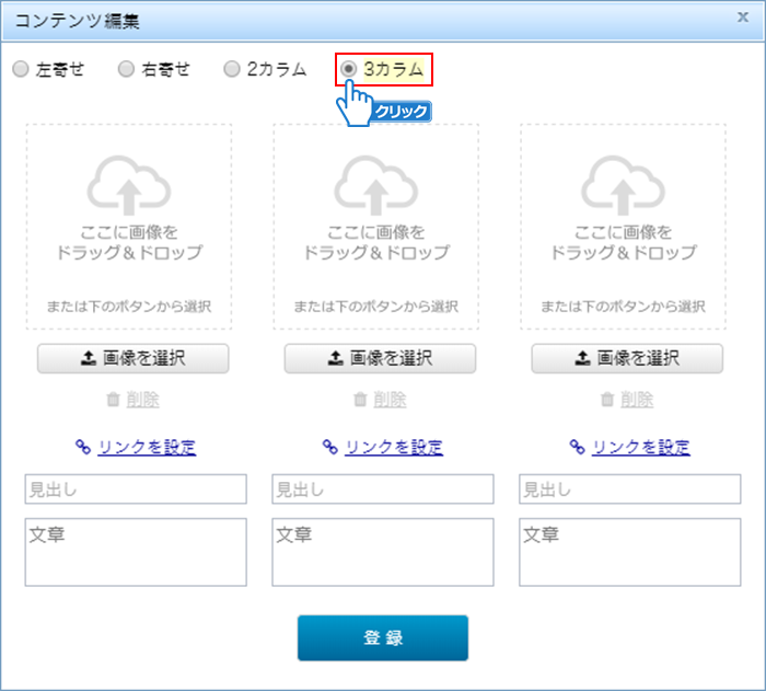 ・左寄せ ・右寄せ ・2カラム ・3カラム