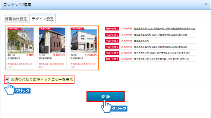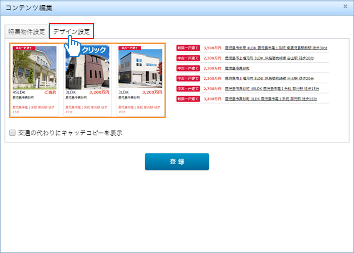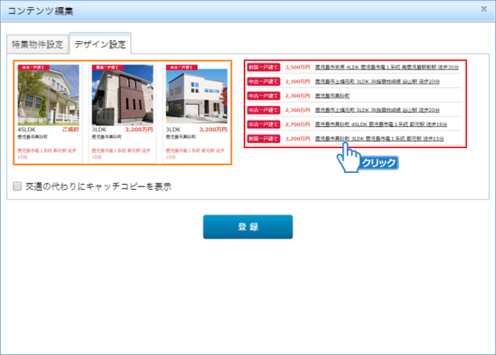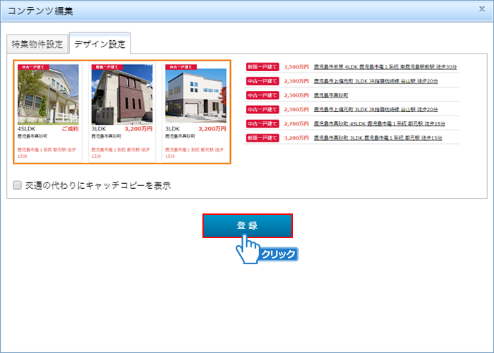 画像付きデザインの場合、交通情報をキャッチコピーに変更することが可能です。