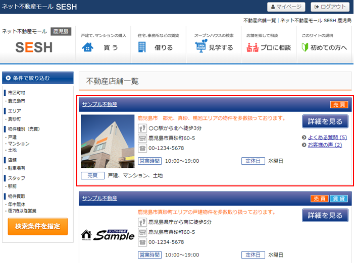 またネット不動産モールの店舗一覧にも表示されます。