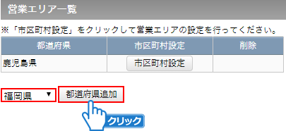 ①追加したい都道府県名を選択して、「都道府県追加」ボタンをクリックしてください。