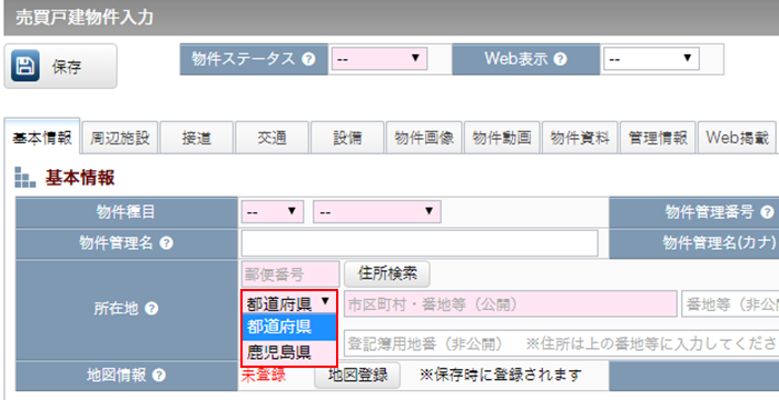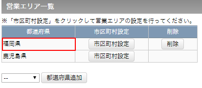 営業エリアを設定すると、物件登録時に都道府県や市区町村が絞られるので、選択がしやすくなるメリットがあります。