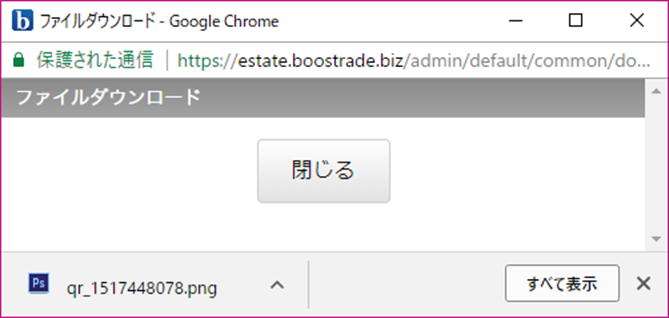 ④QRコードが表示されますので、「ダウンロード」ボタンをクリックしてください。