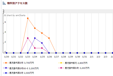 物件チラシの作成し、ポスティングや新聞折り込みをした後に、広告掲載した物件のアクセス状況が一目で確認できます。