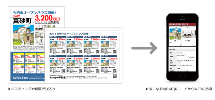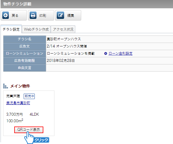 当システムでは、作成した物件チラシからQRコードの発行が可能です。