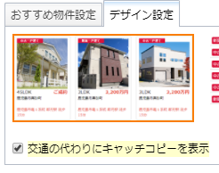 トップページの物件表示パーツで、交通の代わりにキャッチコピーを表示できるようになりました。